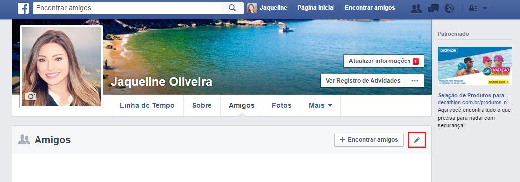 De seguida, vá até ao ícone do lápis que aparece à direita e que lhe permitirá Gerenciar os amigos. Neste momento verá a lista de amigos que tem adicionados no Facebook.
