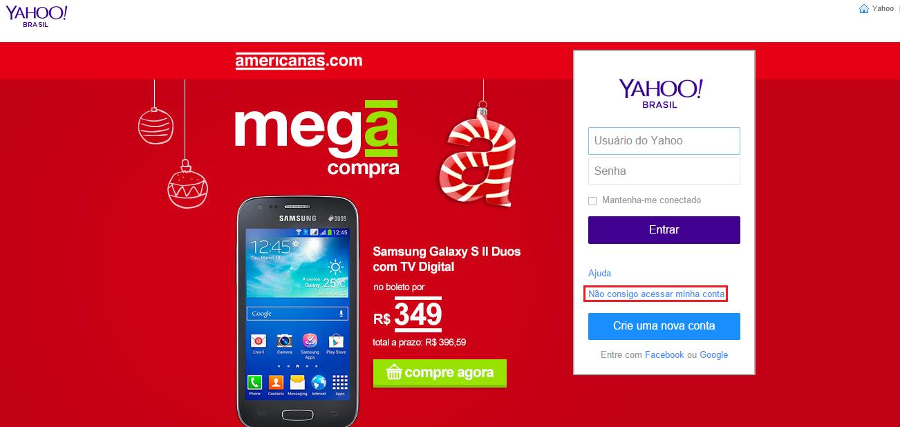 Comece entrando na página principal do Yahoo Mail. Logo abaixo da caixa onde você deve colocar seu ID de usuário e sua senha, você encontrará um link chamado "Não consigo acessar minha conta". Clique nele.