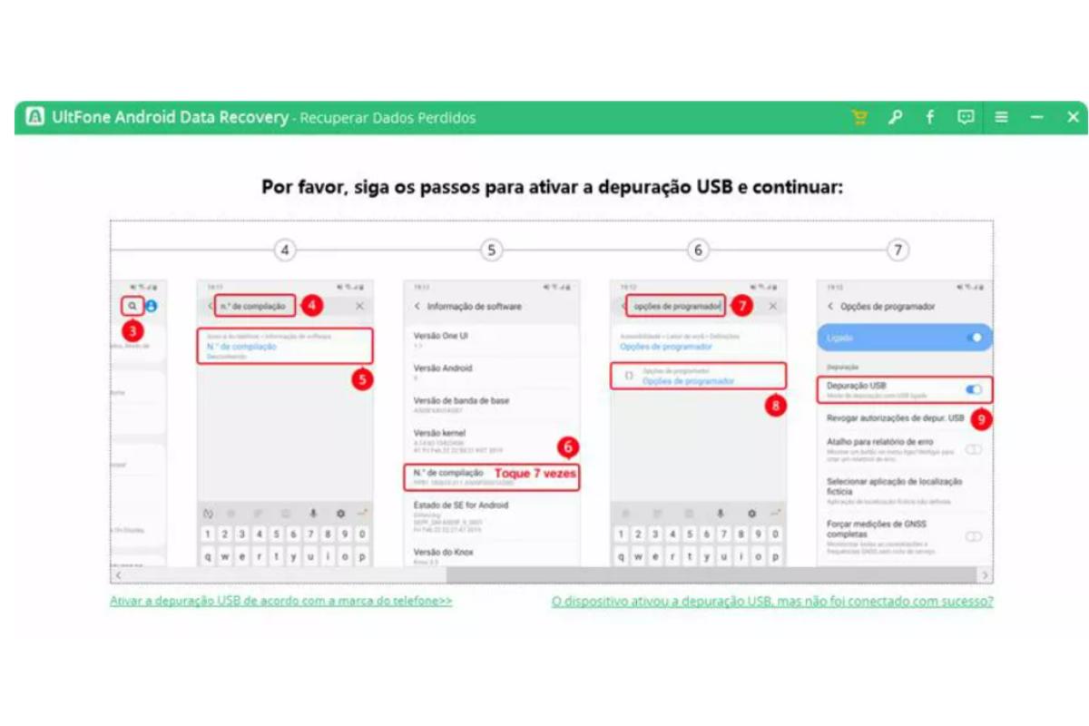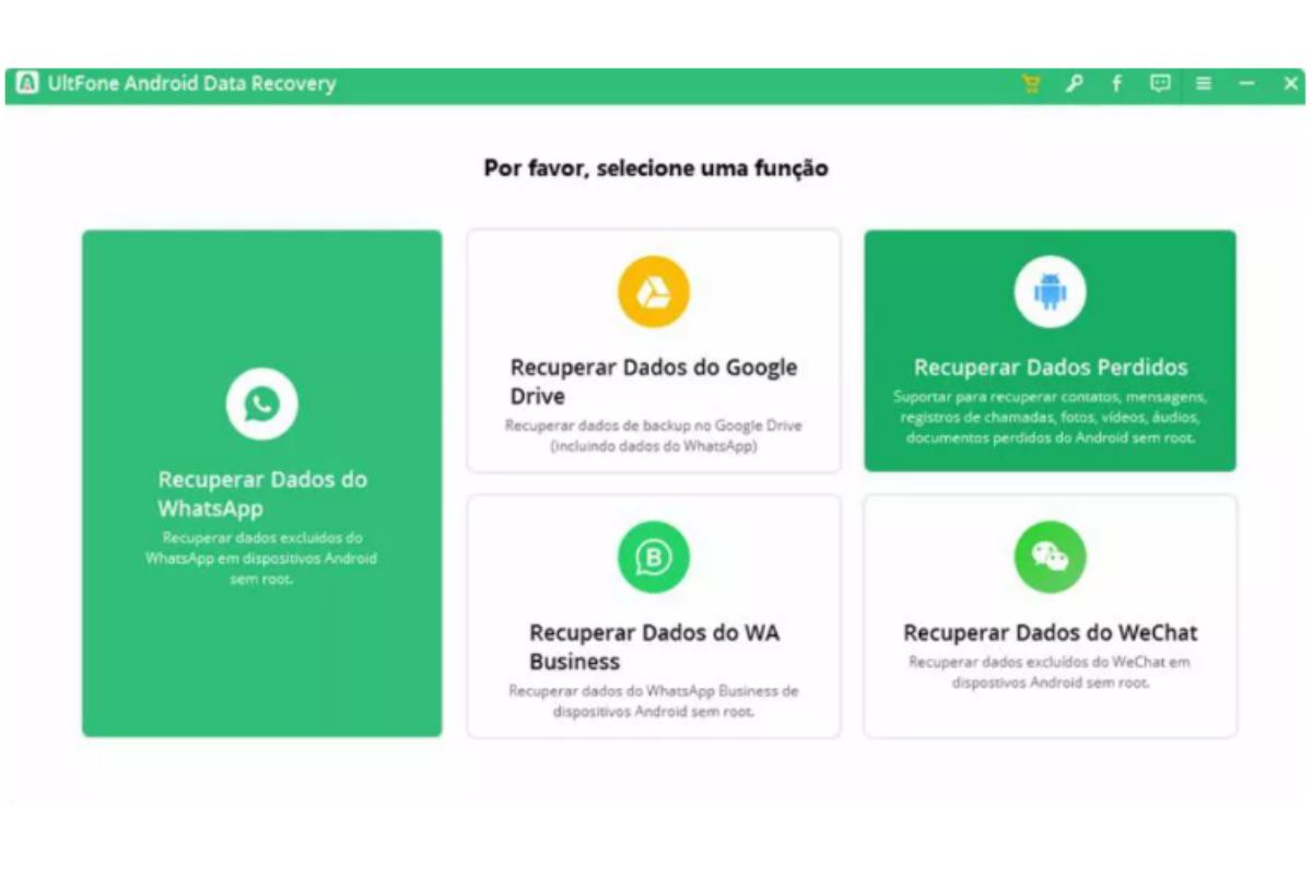 Ao baixar o software UltFone Android Data Recovery, você pode usá-lo da seguinte maneira para recuperar os seus dados: