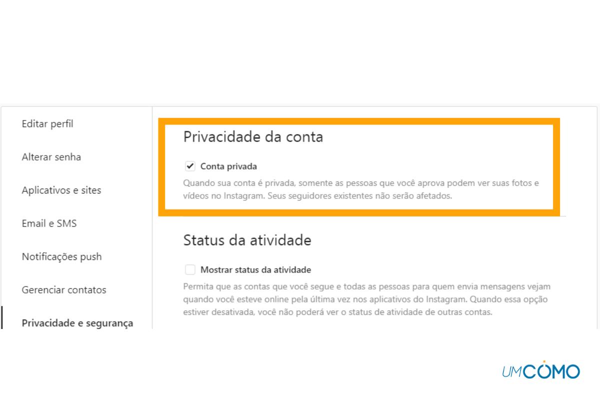 - Assim que as opções dentro do submenu forem exibidas, localize "Privacidade de conta" em "Conexões" e desative a privacidade de conta.