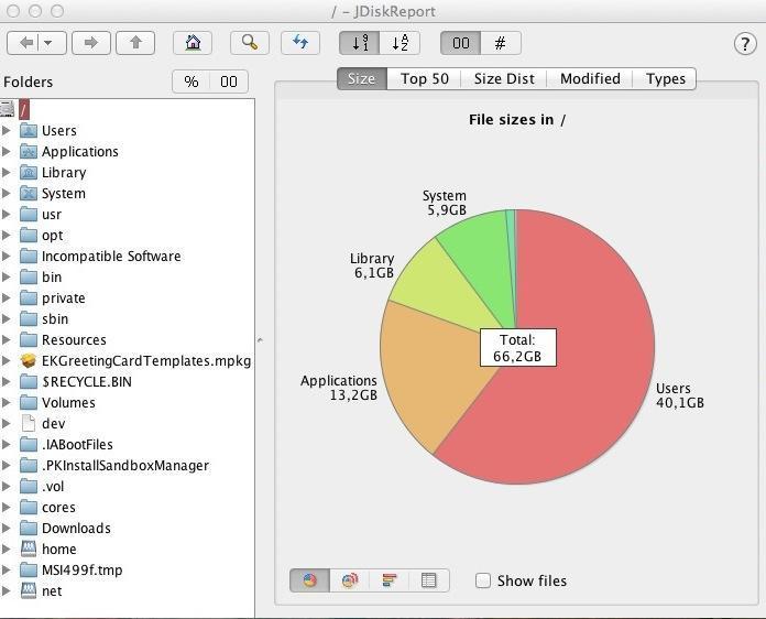 Depois de escolher a parte do computador onde quer saber que pastas ocupam mais espaço, comece a escanear. No nosso caso, escolhemos o disco rígido inteiro. Não demora muito tempo, uns dois minutos para obter o relatório para um espaço de um pouco mais de 66 GB.