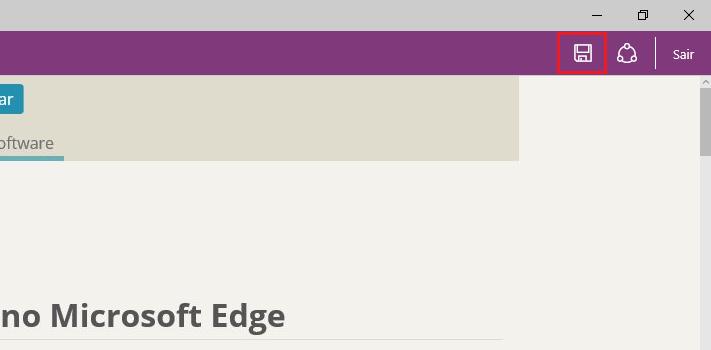 Ao clicar nesse ícone, aparecerá uma barra lilás em que deverá clicar no ícone da disquete para salvar essa página da web para ler posteriormente.