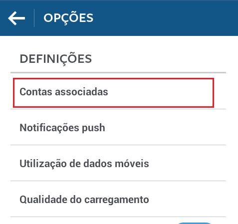 Dentro do menu Opções do Instagram, terá que deslizar a tela para baixo até encontrar "Configuração" e uma vez aí fazer clique sobre a primeira opção: "Contas associadas", através da qual poderá sincronizar o seu Instagram com diversas redes sociais.