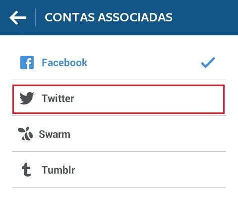 Neste momento, irá aparecer uma lista de todas as contas com as quais pode sincronizar com a do Instagram e deverá clicar sobre a segunda: "Twitter".
