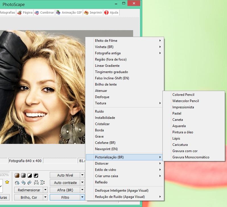 Em seguida clique no botão "Filtro", presente no painel de botões abaixo da fotografia e, depois, em "Pictorialização". Irá aparecer uma lista de várias opções de efeitos, que correspondem a diferentes materiais e estilos usados em desenho e pintura.