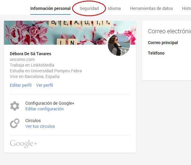 Uma vez dentro você poderá ver a informação da sua conta. Na parte superior você verá várias guias, terá de selecionar a segunda: "segurança".