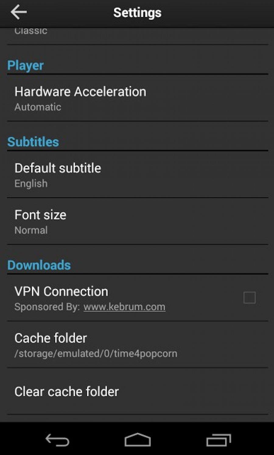 O Popcorn Time grava o filme que está a visualizar no cartão SD e, quando começar a ver outro filme, o anterior vai ser apagado para que o atual possa ser reproduzido.