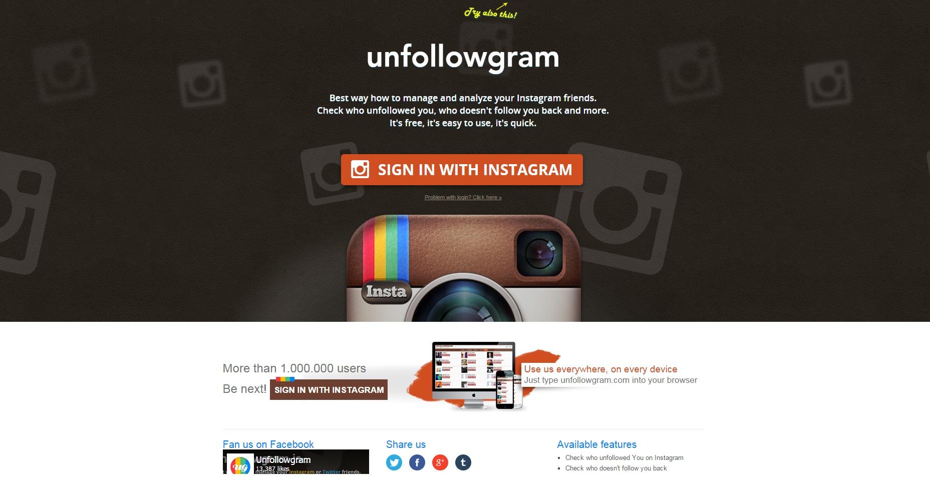 A primeira coisa a fazer para saber quem deixou te seguir no Instagram é ir ao site unfollowgram.com.