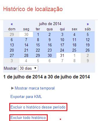 Se você quiser apagar o histórico de sua localização em um dado período de tempo, basta selecionar a data pretendida e clicar em "Excluir o histórico desse período". Caso pretenda eliminar todo o histórico, clique em "Excluir todo histórico".