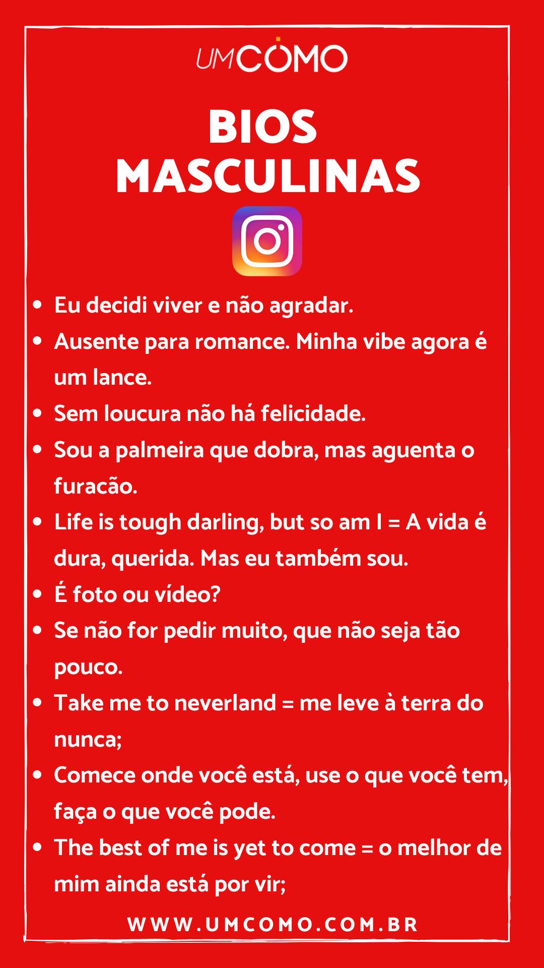 A bio do seu Instagram é a primeira impressão que uma pessoa terá do seu perfil, seja ela seu seguidor ou não, mesmo que o seu Insta seja privado, já que a bio sempre aparece, ainda que a pessoa não te siga. São 150 caracteres que definem o que você quiser aos seus seguidores: quem é você, sobre o que é o seu perfil, o que você está divulgando e por aí vai. Se você quer deixar a sua bio do Instagram TOP, mas não sabe por onde começar, o umCOMO reuniu as melhores frases de biografia para Instagram masculino e dicas para você mesmo editar uma bio criativa e original. Veja as nossas ideias e inspire-se já!