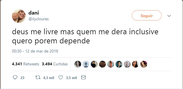 E no auge do 'quem me dera mas deus me livre', como se a expressão já não fosse ambígua e contraditória o suficiente, os internautas começaram a brincar com a frase 'deus me livre mas quem me dera inclusive quero porém depende' para exagerar ainda mais no sentido de contradição do sentimento. Na essência a expressão significa a mesma coisa já explicada anteriormente, porém com um toque extra de drama e humor.