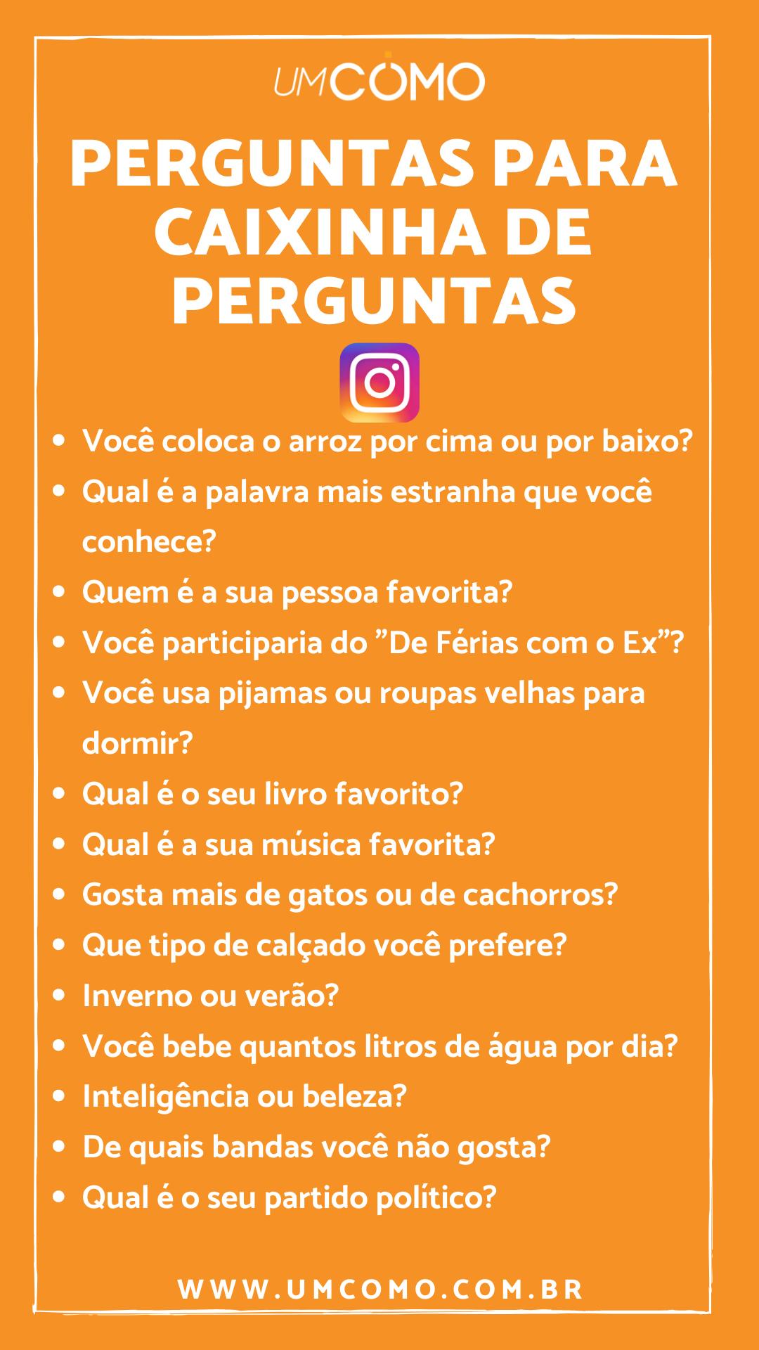 Se o que você pretende é fazer perguntas para os seus/suas amigos(as) e interagir com eles até mesmo para descobrir coisas que não sabe, tente algumas das perguntas a seguir. Reunimos temas polêmicos, curiosidades e clichês nas seguintes sugestões de perguntas para fazer na caixa de perguntas do Instagram para amigos:
