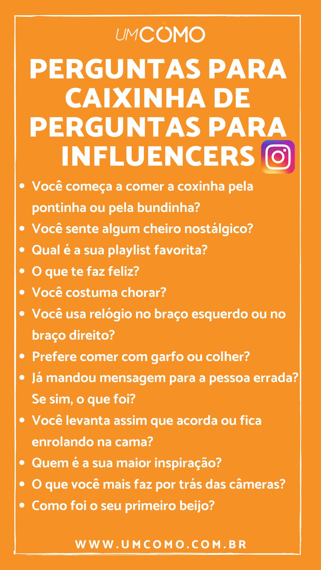 Perguntas para caixas de perguntas do Instagram para influenciador