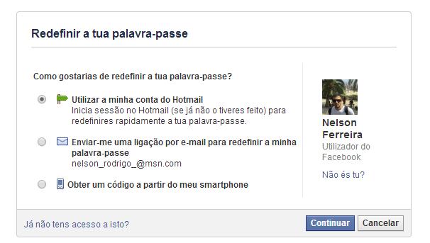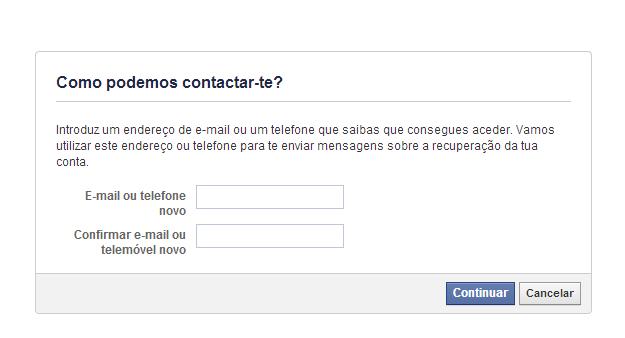 Digite seu novo e-mail para que o Facebook possa entrar em contato com você e para seguir os passos da rede social necessários para recuperar sua conta.