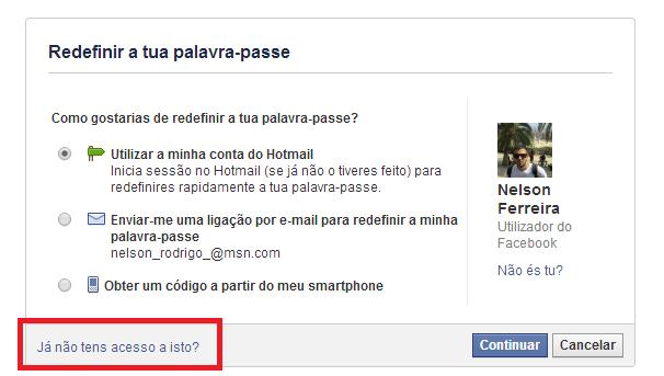 Se também roubaram seu e-mail, clique em 'Você não tem mais acesso?'.